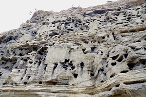 Von Viedma sind es nur 30km bis zum Küstenort Balneario El Condor … der Name der Ortschaft ist etwas verwirrend. Hier gibt es keine Condore, wie man annehmen könnte … hier lebt die weltweit größte Fels-Papageien-Kolonie. Eine Anzahl von 35.000 Loros brüten, nisten, leben an den Klippen in tausenden von Höhlen … verteilt auf 12 Kilometer.