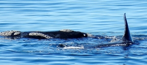 Das Wasser ist glatt wie ein Spiegel … nach nur kurzer Zeit sehen wir auch schon die ersten Wale.