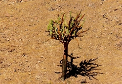 Die saftig grüne Landschaft ändert sich nach nur wenigen Kilometern … bei einer Höhe von 2.000m versuchen hier lediglich ein paar Candelabro-Kakteen zu überleben.