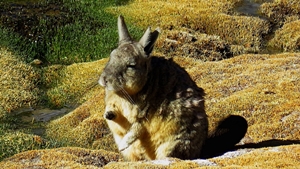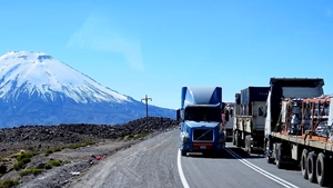 Für uns ist die Weiterfahrt kein Problem … auch die Trucks kommen in diesen Höhen nur langsam vorwärts. Die Ruta 11 führt mitten durch den Nationalpark Lauca … außer der schönen Berglandschaft sehen wir zahlreiche Alpacas, Vicunas, Lamas und Vizcachas (Chinchilla-Hasen).
