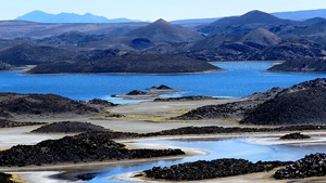 Zwei der höchst gelegenen Seen der Welt, die Lagune Cotacotani und der Lago Chungara mit über 4.500m liegen in Sichtweite und direkt an der Straße.