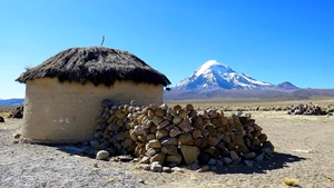 Wir bezahlen den stolzen Touristen-Eintrittspreis von umgerechnet 14,50 US$ p.P. … hoppeln über eine echte waschboard-piste bis zur Ortschaft Sajama. An der Strecke liegen ein paar sehr einfache Bauernhöfe. Die Bewohner sind zu 90 Prozent Aymara-Indianer … ihr Leben gestaltet sich überwiegend durch Vieh-Wirtschaft und ist sehr sehr arm und einseitig.