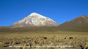 Der Parque Nacional Sajama … schon von Weitem haben wir einen fantastischen Blick auf den höchsten Berg Boliviens.