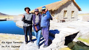 Wie schön es hier im Park ist, entdecken wir später bei herrlichem Winter-Sonnenwetter gemeinsam. Wir laufen durch die zum Teil vereiste Pampa, überqueren warme Quellwasser und besuchen die beiden „Bademeister“ in den Termales.