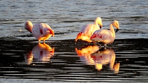 Eingepackt, wie eine Zwiebel, schleiche ich mich noch vor Sonnenaufgang an die Flamingos … zum erstenmal erlebe ich meine Lieblings-Vögel schlafend. Die Tiere, der dampfende See, die umliegend schneebedeckten Berge, die klirrende Kälte, das Warten auf den Sonnenaufgang … für mich ein unglaublich schönes Erlebnis.