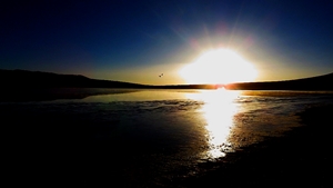 Tatsächlich sonnen sich hier ein paar hergewanderte Backpacker … die scheuen Flamencos haben sich auf die gegenüberliegende Seite des Sees verzogen. Am nächsten Morgen sind sie zurück und stehen bei minus 9 Grad eng beieinander.