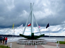 Zum Glück finden wir noch rechtzeitig einen ebenen Parkplatz auf der Mittel-Etage … gehen bergab zu den alten Holzhäusern am Hafen.