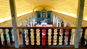 Zum guten Schluß finden wir einen Parkplatz … direkt hinter dem Friedhof in Nercon. Nach einer sehr ruhigen Nacht besichtigen wir am nächsten Morgen auch gleich die wunderschöne Holzkirche … steigen bis unter das Dach.