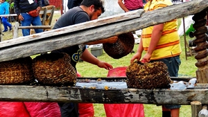 Es wird ein schönes Fest … Schafe werden geschoren, die Wolle wird zu Garn gesponnen, gewebt und verstrickt. Gekocht, gebacken und gebruzzelt wird traditionell über dem Feuer
