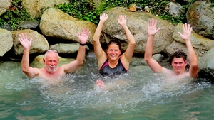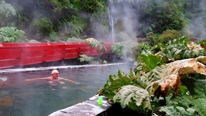 Er hat sich gelohnt … die unterschiedlich heissen Termalbecken liegen in einer grünen, natürlichen Gebirgsschlucht. Über rote Holzstege sind die Pools bequem zu erreichen.