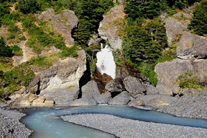 Wir entscheiden uns, mit dem Südteil des Parks anzufangen … auf der Schotterpiste Y200 geht es durch wunderschöne Landschaft. Immer wieder gibt es Haltepunkte mit fantastischen Ausblicken auf türkisblaue Fjorde und die Sierra del Torro. Da es schon spät ist, verbringen wir die erste Nacht noch außerhalb des Parks … versteckt auf einem Wald- und Wiesengrundstück mit Blick auf einen Wasserfall.