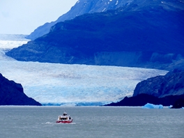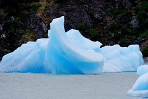 Bei der Administracion besorgen wir uns ein Besucher-Ticket für die nächsten drei Tage … frei übernachten können wir an diversen, vorgegebenen Stellplätzen. Unser erster Besuch gilt dem Lago Grey. Teure Bootstouren (110 US$ p.P.) bis an den Gletscherrand finden bei jedem Wetter statt. Wir laufen am Südufer über eine lange Kiesbank, wandern ein paar Kilometer um eine Landzunge mit Blick auf hausgroße Eisschollen, die selbst bei bewölktem Himmel in einem fantastischem Türkisblau vor uns liegen.