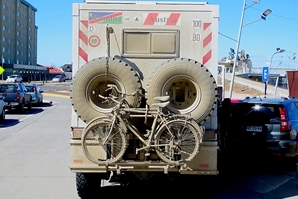 Wir erkunden die Innenstadt mit ihrem Denkmal an Magallan und die Indianer, wir bestaunen die Villa der seinerzeit reichsten Schaffarmer Braun/Menendez, wir streifen entlang der Strandpromenade wo wir das Wrack des ersten eisernen Segelschiffes mit vier Masten liegen sehen, wir fahren zur Frei-Handelszone, um uns preiswert mit Lebensmittelvorräten einzudecken. Wir entdecken das Fahrzeug von Christa und Martin … unseren Reisefreunden aus Namibia.