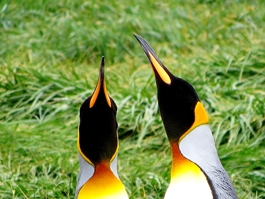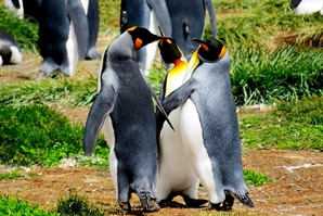 Am Ende der Bucht zweigen wir bei Onaisin auf die Y85 ab … unser Ziel ist ein Besuch bei den Königspinguinen im Parque del Rey. Vor wenigen Jahren hat sich hier eine kleine Kolonie dieser wunderschönen Pinguine angesiedelt … es ist einzigartig für ganz Süd-Amerika. Normalerweise sind die Königspinguine auf dem Eis in der Antarktis beheimatet … hier stehen die stattlichen Vögel ungewöhnlich auf einer grünen Wiese neben den Schafen.