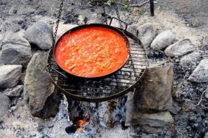 Claro … mit einem kräftigen Linsen-Eintopf und einigen '8-Hermanos' wärmen wir nicht nur die Beiden auf. Sandra und Tim übernachten in der Hütte … das Feuer, in dem nicht gut abziehenden Ofen, müssen sie leider schnell wieder ausgehen lassen.