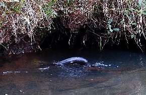 Es wird spürbar kälter … aus dem Regen wird sogar für eine kurze Zeit Schnee. Für heute sollen uns 140 km reichen … wir übernachten unweit der Straße auf einem Wiesen-Picknickplatz. Hier am Fluß gibt es noch einmal eine Chance Biber zu sehen. In vielen Kurven verläuft das Flüsschen durch die Ebene … wir stapfen durch das hohe, nasse Gras am Ufer entlang. Tatsächlich sehen wir statt Biber einen Fischotter … er ist genauso erschrocken wie wir und taucht wie ein Aal blitzschnell unter.