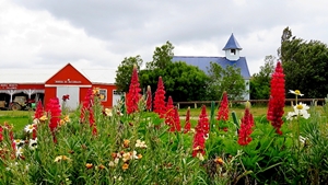Wir dürfen uns auf der Schaffarm eigenständig umsehen … die mit Wildblumen hübsch angelegten Gärten der alten Gäste- und Arbeiterhäuser entschädigen uns ein wenig für die leeren Schafställe. Es gibt sogar eine eigene Kapelle auf der Estancia.