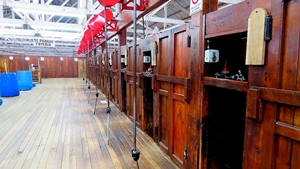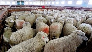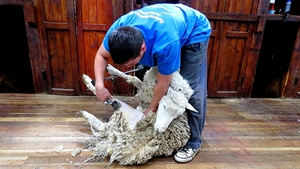 Der Schuppen ist riesig, die Schafe stehen im standby in den Gattern … 20 Schafe können gleichzeitig geschoren werden … für ein Schaf braucht der Scherer ca. 5 Minuten.