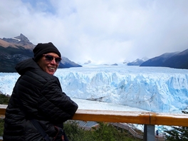 Fünf Stunden verbringen wir auf den Stegen und Balkonen, um Amerikas längsten und flächenmäßig zweitgrößten Gletscher aus nächster Nähe zu bestaunen. Das gesamte Eispaket liegt in einem Seitenarm des blau-milchigen Lago Argentinos … durch die ständigen Abbrüche und Bewegung wächst und schiebt sich der Gletscher bis zu 100 m im Jahr vor. Dieses Heranwachsen braucht etwa vier Jahre bis zur Berührung mit dem Ufer. Der Wasserspiegel steigt dann so enorm an … das Ende der gesamten Eiswand zerbricht in einem riesigen Spektakel.